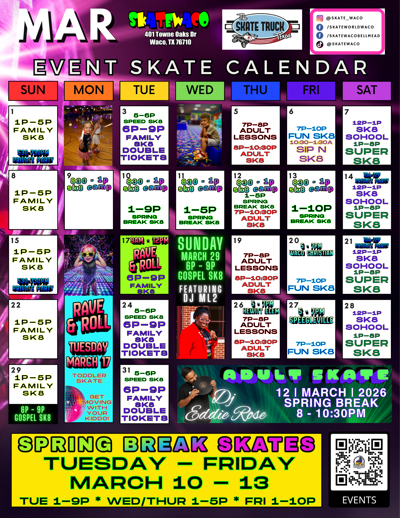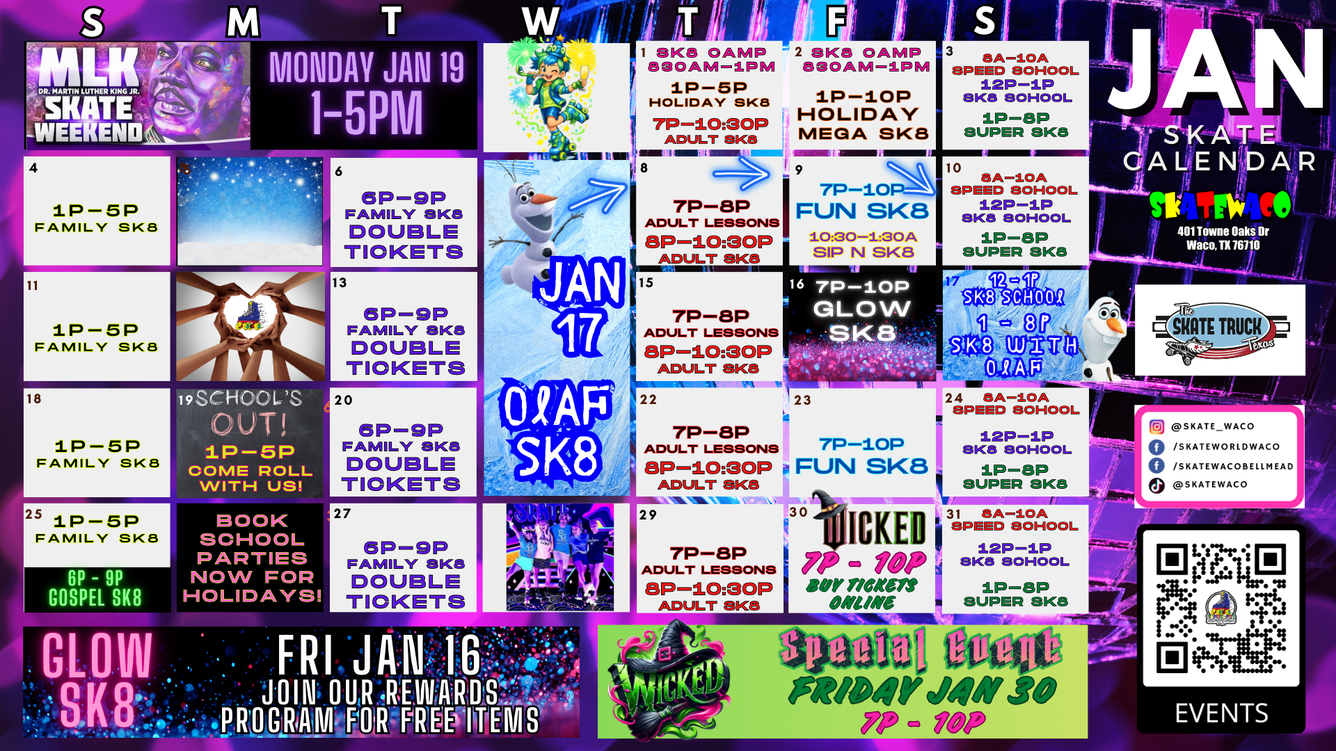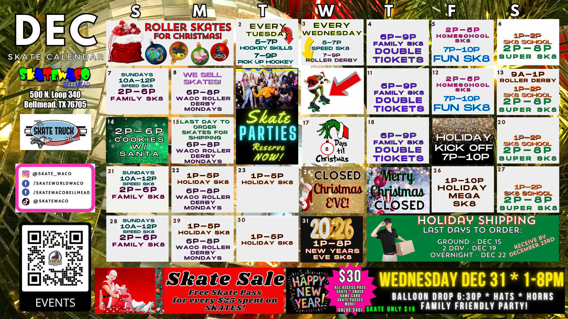 VISIT OUR FACEBOOK AND INSTAGRAM PAGES TO STAY UP TO DATE ON ALL THINGS SKATING!